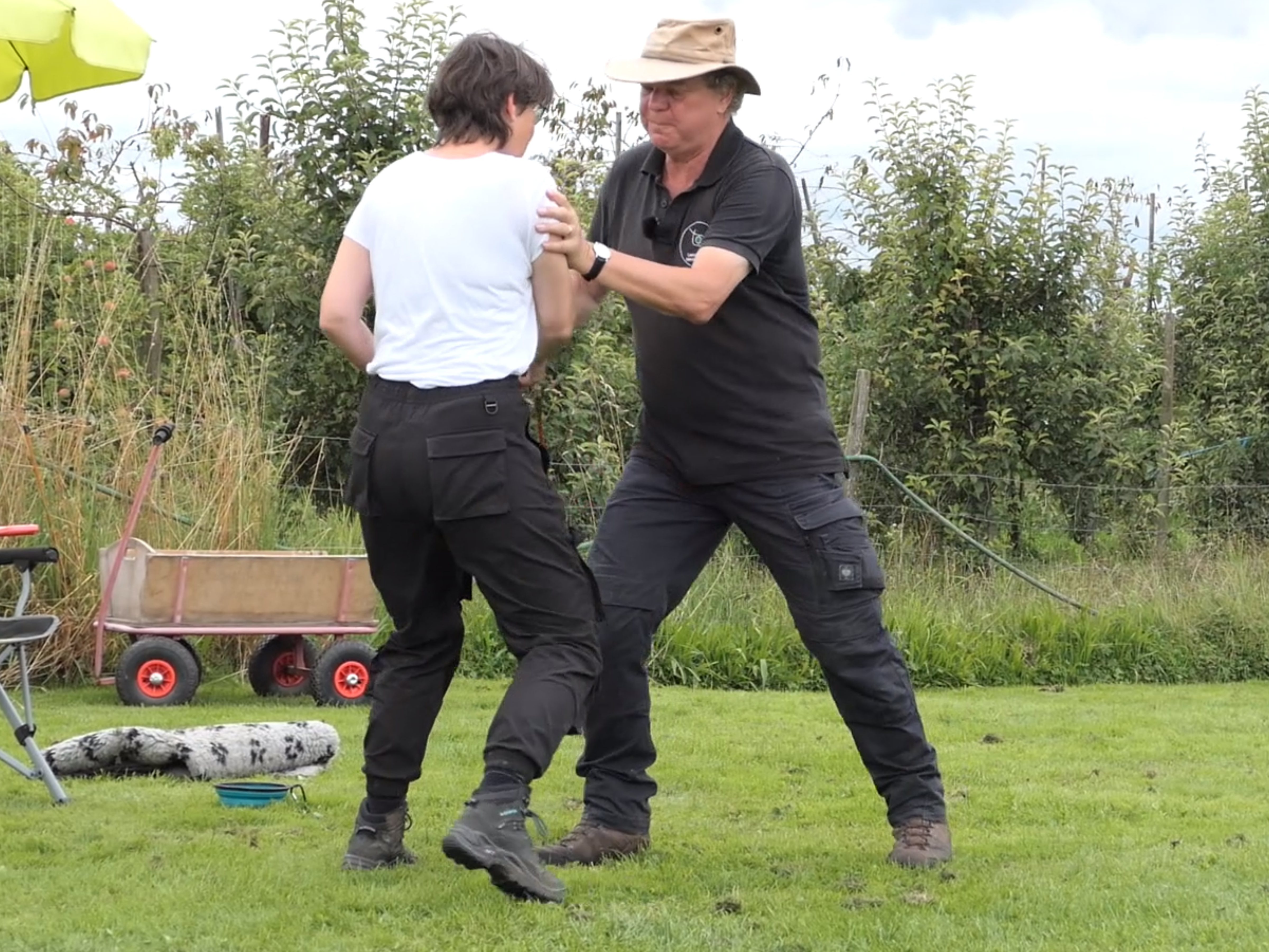 - Seitliches Mitgehen, Seite an Seite (Leine laufen)
